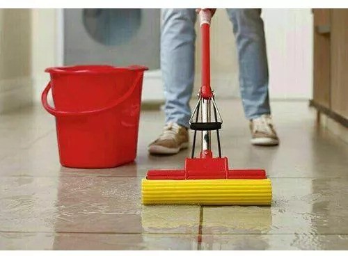طقم ممسحة تنظيف بيد بلاستيك مع جردل
