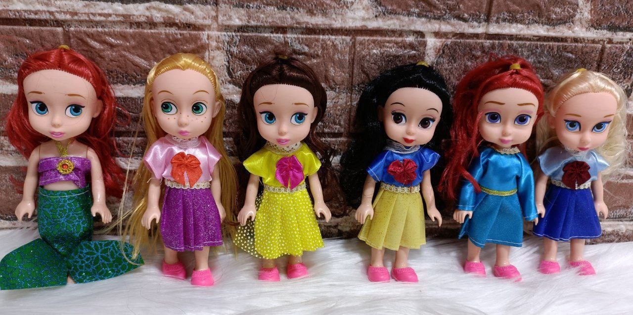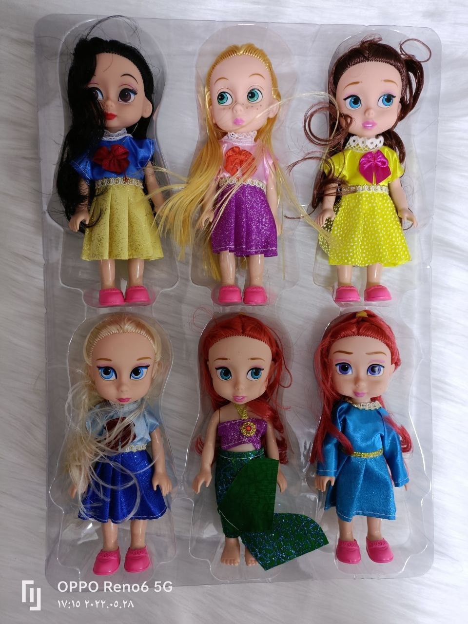 ⬅️ كل بنوتة هتبقى عندها مجموعه عرايس ديزنى كاملة ? ⬅️ سنووايت ، ريبونزل ، بيل ، فروزن ، ميرميد، السا ⬅️ خامة عضم مستوردة ? ⬅️ تفاصليهم جميلة عيون ? وشعر طويل ⬅️ طول العروسه 17 سم ?