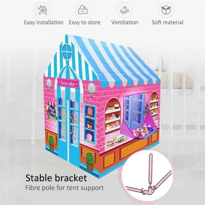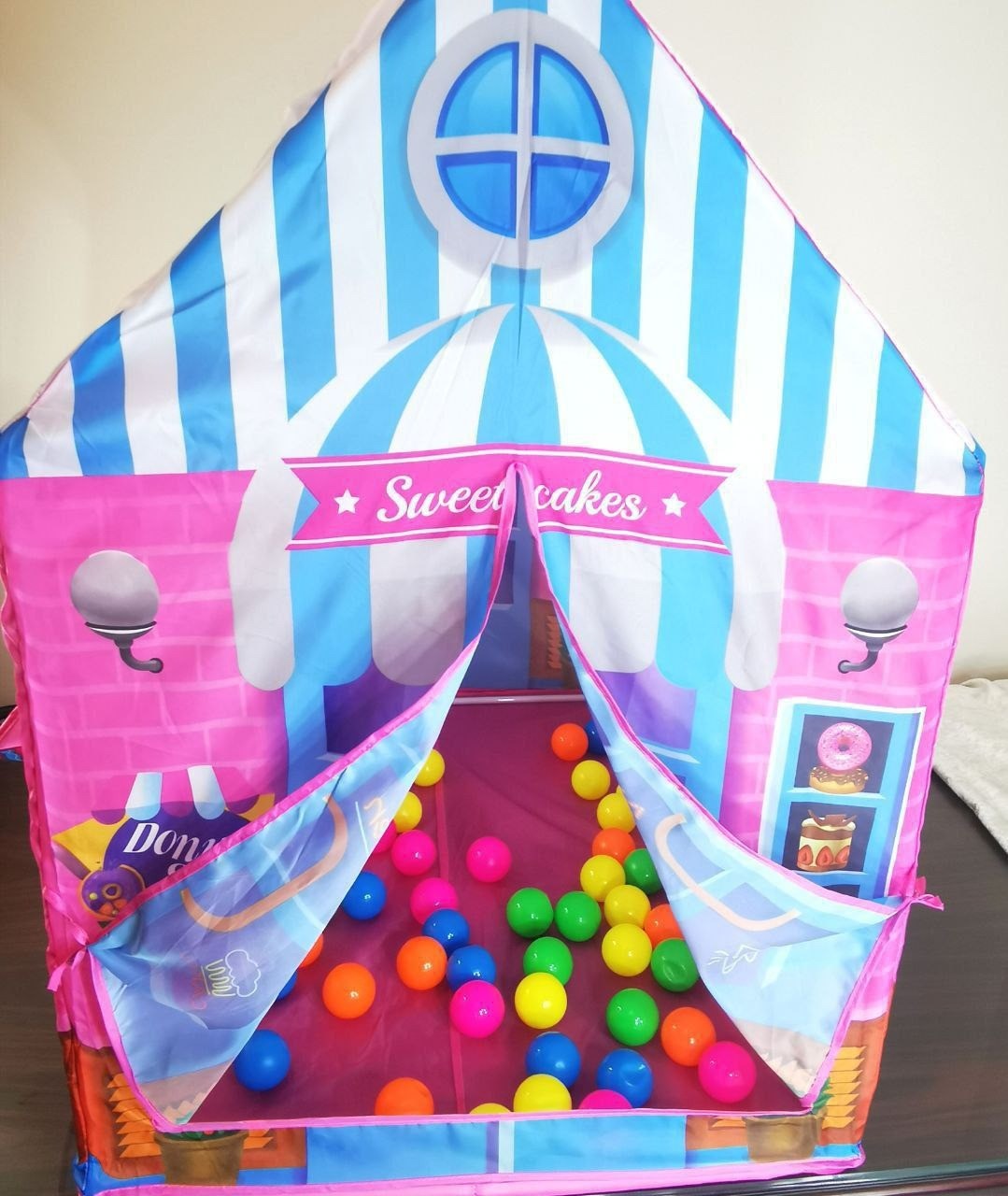 خيمة بيت الكور الممتعة للأطفال? بعمدان بلاستيك ? عشان يعيشوا التجربة بجد ? أكنهم بيبيعوا فى محل حلويات ????? ⬅️ خيمة تنفع داخل المنزل أو فى الخارج ( حدائق ،نوادى ،..) In dooor & out door ? ? ⬅️ خيمة يتم تثبيتها بواسطة قوائم بلاستيكية قوية ملحقة فى العلبة للحصول على شكل ثابت? الكافر الخارجى ووتر بروف ? ابعاد ? ١٠٣ ×٩٣×٦٩ سم