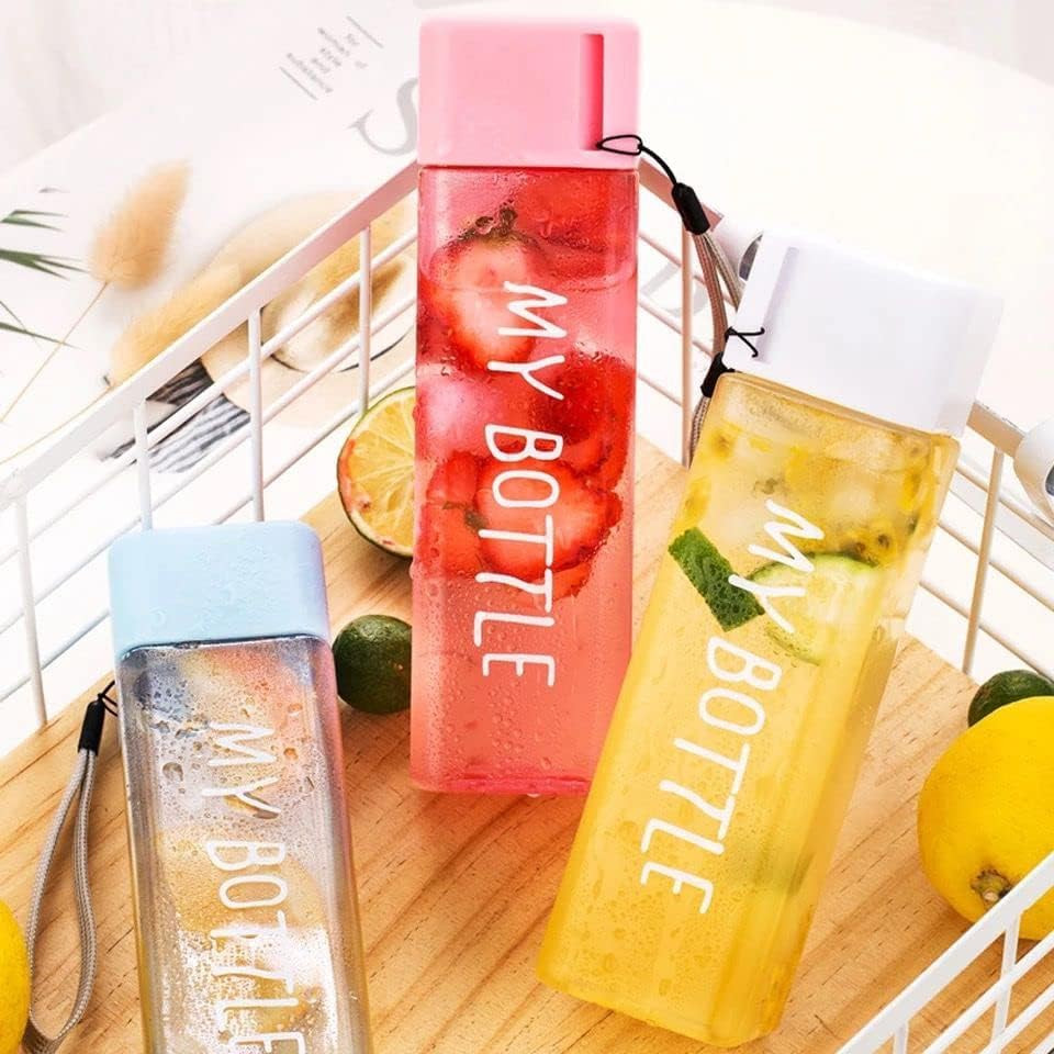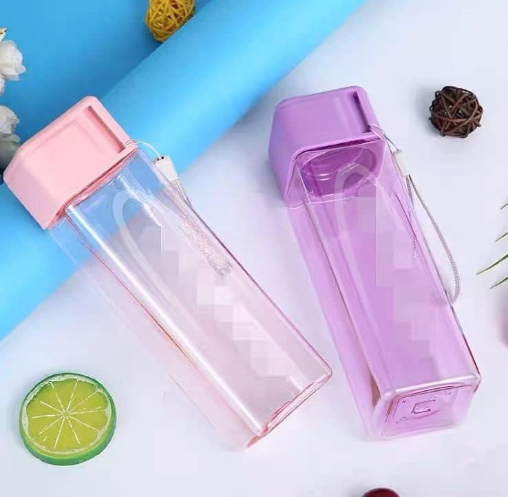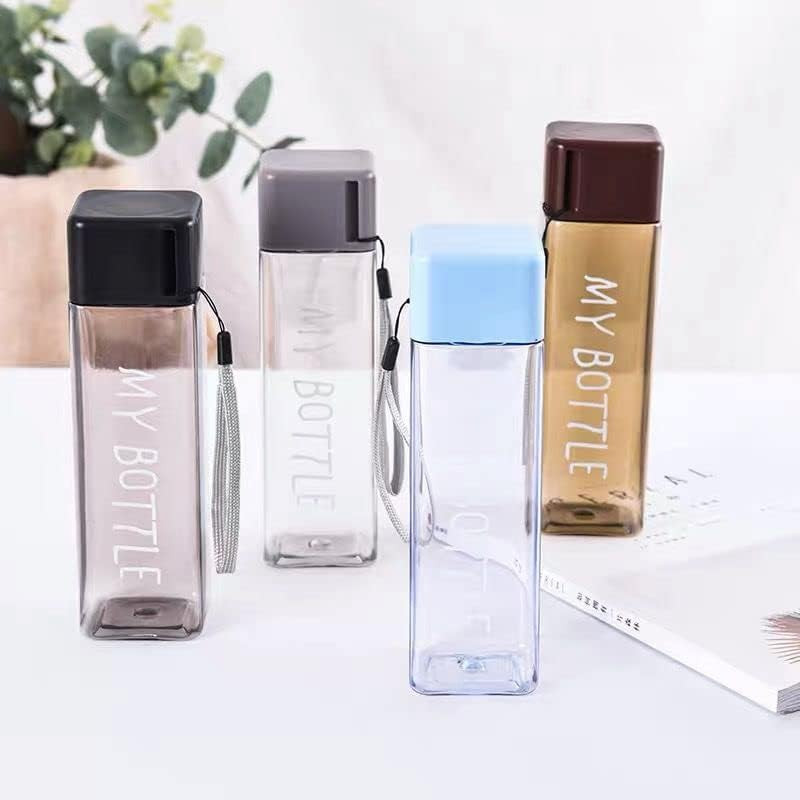 زجاجة مياه مربعة شفافة وخالية من مادة بيسفينول أ، مناسبة للرياضات ومقاومة للتسريب بسعة 500 ملليلتر