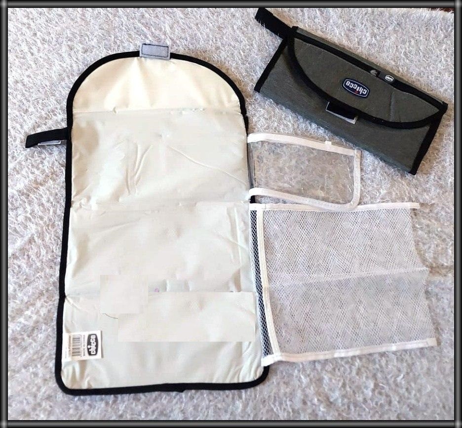 مفرش ومشمع غيار البيبي من شيكو مضاد للمياه وتر بروف. جيوب داخلية لحفظ الحفاضات والمناديل المبللة وجميع مستلزمات البيبي. وبه جيب خارجي بسوستة يمكنك استخدامه في حفظ المتعلقات الشخصية. يمكن طيه بعد الاستخدام وغلقه ويكون على شكل حقيبة صغيرة بتصميم جذاب